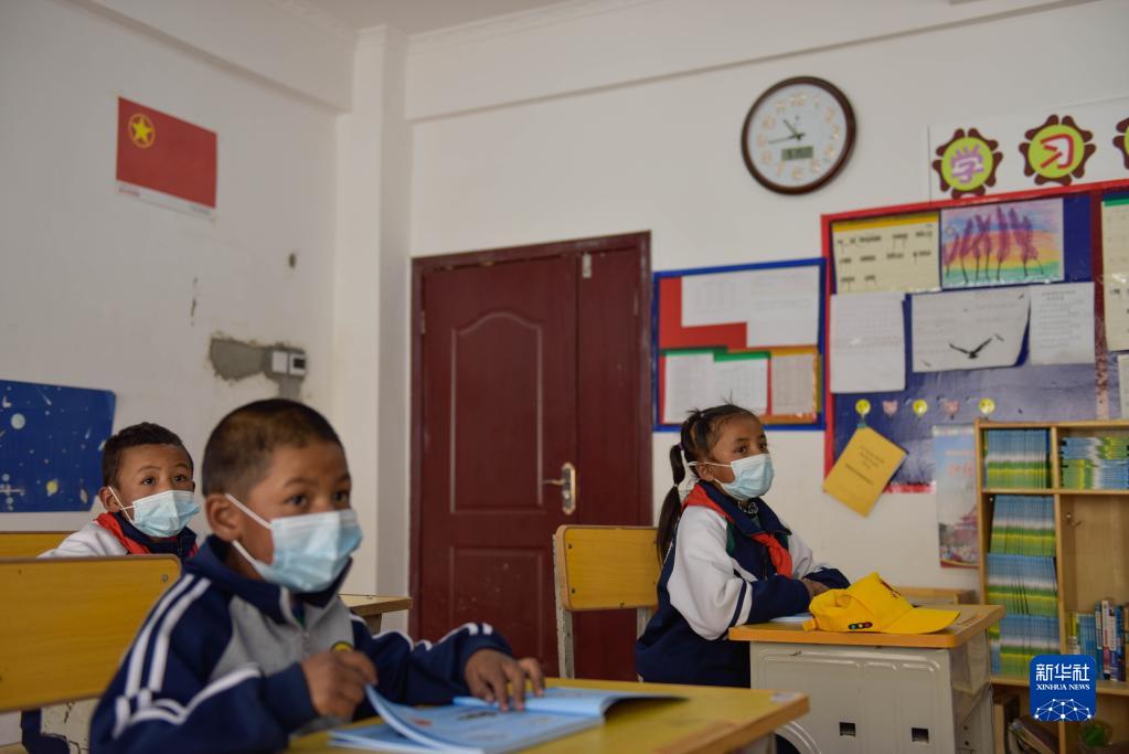 學生在楚魯松杰鄉(xiāng)教學點的教室里上課(2021年9月19日攝)。新華社記者 格桑朗杰 攝