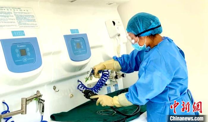 圖為醫(yī)生清洗設備。西藏康城腫瘤醫(yī)院供圖