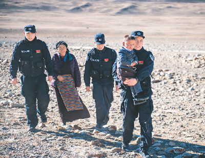 普瑪江塘邊境派出所坐落于此,派出所的移民管理警察守護(hù)著轄區(qū)內(nèi)的祖國(guó)領(lǐng)土。民警們常在中國(guó)和不丹的邊境地區(qū)巡邏,那里冰川密布,碎石路下往往暗藏冰裂縫。巡邏途中,民警們會(huì)熱心幫助前來(lái)求助的牧民群眾?!班l(xiāng)親們有困難總是會(huì)想到我們?!泵窬⑼酱胝f(shuō)。