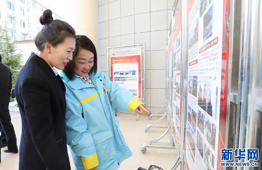 圖為與會(huì)代表熱議各級(jí)黨委黨建成果展。窮吉攝(新華網(wǎng)發(fā))
