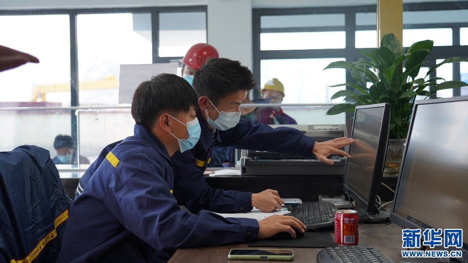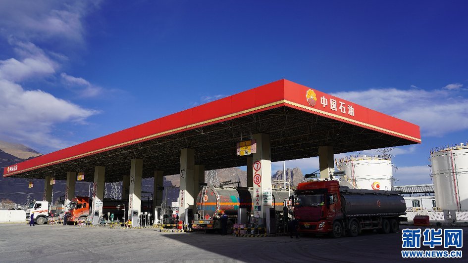 圖為油庫發(fā)油臺工作人員在交接工作(12月3日攝)。新華網(wǎng) 貢桑央吉(實習生) 攝