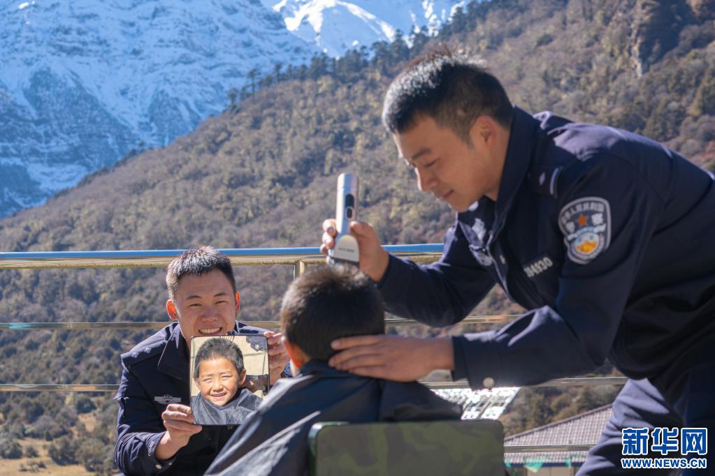 圖為民警為轄區(qū)兒童免費(fèi)理發(fā)(12月12日攝)。新華社發(fā) (晴雯、彭維熙、劉戀報(bào)道)