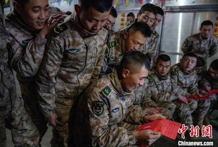 聯(lián)歡的尾聲指導(dǎo)員夏邦國拿著最后的彩袋走到臺(tái)前,把晚會(huì)推向高潮,“兄弟們,這還有一大袋紅包,里面裝著的可是最珍貴的祝?!?。官兵們用抽盲盒的形式拆開新年的“紅包”。中士趙路寬抽到一個(gè)最鼓的,打開是滿滿的糖果;下士吳兵拆開的是一個(gè)帶有小機(jī)關(guān)的新年賀卡;下士鄧云川拆到一封遠(yuǎn)方的匿名信,“雖不曾相見與相識(shí),但知道是你們?cè)谀瑘?jiān)守付出,守衛(wèi)著祖國的雪域邊防”。伴隨著他磕絆的普通話,連隊(duì)官兵漸漸安靜下來?!斑呹P(guān)有我,請(qǐng)祖國和人民放心”,簡(jiǎn)易投影的大屏上開始播放著官兵們一年多來頂風(fēng)冒雪,戰(zhàn)天斗地的光影片段,在這大山里的多少的苦累酸甜,都已經(jīng)鐫刻在茫茫雪域。