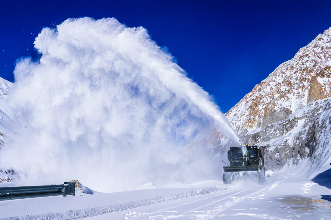 圖為武警官兵正在新藏線馬莜木拉段清理積雪。