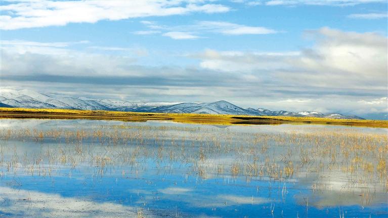 西藏自治區(qū)日喀則市仲巴縣帕羊濕地地處雅魯藏布江上游,該地地理景觀獨(dú)特,是集雪山、沙丘湖泊和草地為一體的綜合性自然保護(hù)區(qū),與湛藍(lán)的天空和變幻不定的白云匯集在一起,構(gòu)成了一幅唯美的生態(tài)畫卷。