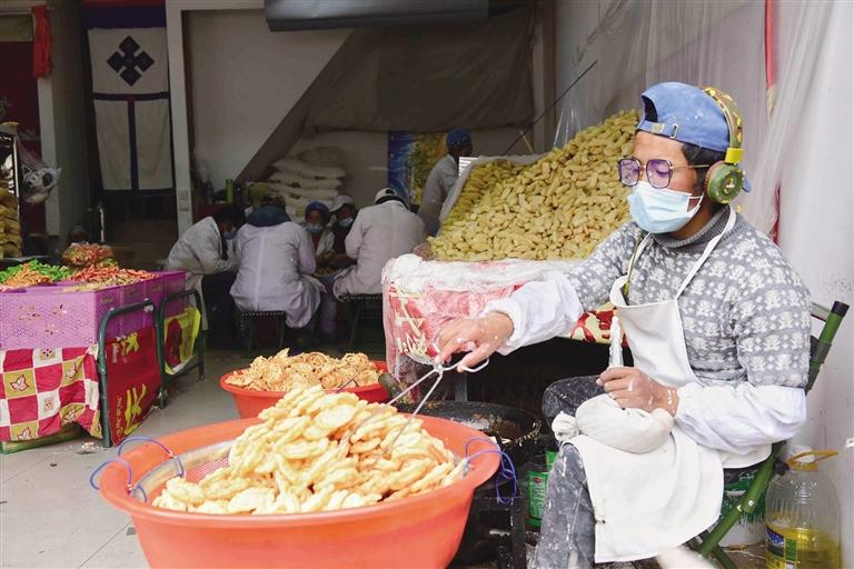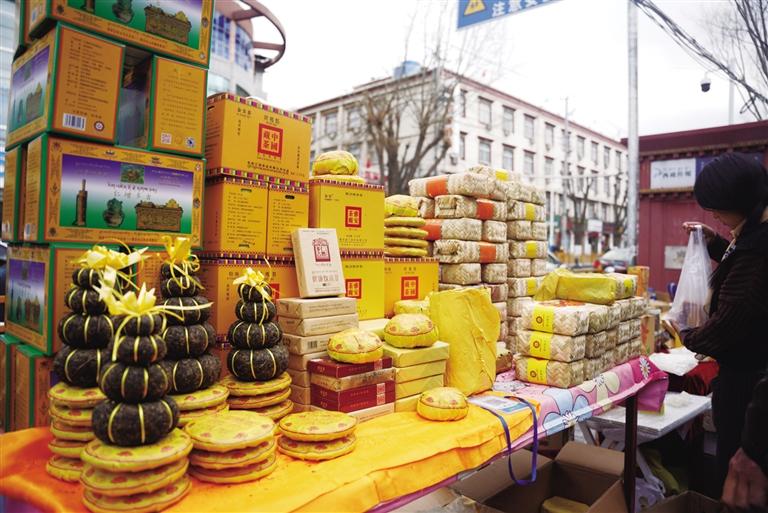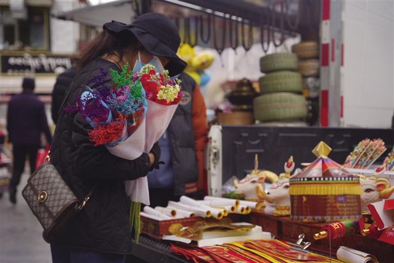 千門萬戶曈曈日,總把新桃換舊符。隨著各民族交往交流交融,藏文對(duì)聯(lián)也逐漸成為藏歷新年年貨市場(chǎng)中不可缺少的“成員”,寄托了人們對(duì)來年美好生活的殷切期盼。走進(jìn)沖賽康市場(chǎng),記者看到很多攤位都擺放著各式各樣紅色藏式對(duì)聯(lián),內(nèi)容主要蘊(yùn)含平安、健康、長壽等吉祥的寓意,不時(shí)還有市民前來詢價(jià)選購。此外,每年藏歷新年前,不少書法家還會(huì)將滿載祝福的對(duì)聯(lián)寫好后送給市民,把濃濃的年味和對(duì)藏歷新年的祝福送到大家手中。