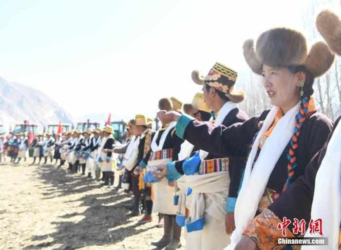 3月16日,西藏拉薩迎來一年一度盛大的傳統(tǒng)春耕儀式。按照藏歷傳統(tǒng),當(dāng)?shù)卮迕裆碇?jié)日盛裝,家家戶戶端著自家的“切瑪”(象征五谷豐登)聚集在田頭,互敬青稞酒,開始撒種,祈福一年的豐收。圖為西藏拉薩市曲水縣茶巴朗村,村民身著盛裝舉行傳統(tǒng)春耕儀式。 中新社記者 貢嘎來松 攝