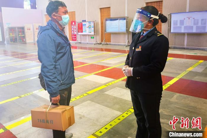圖為羅布在林芝火車(chē)站引導(dǎo)乘客。國(guó)鐵青藏集團(tuán)有限公司 供圖
