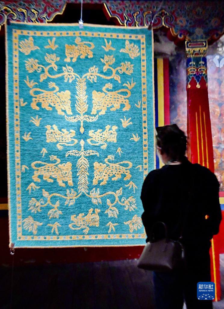 當(dāng)日,名為“智慧和無畏”的“虎毯”展覽在拉薩吉本崗藝術(shù)中心展出。西藏的非遺工作者根據(jù)古代藏毯藏品重新挖掘,整理了以“虎”為主題的圖案,設(shè)計(jì)制作了本次展覽作品。本次展覽展出20余件各具特色的藏毯藝術(shù)作品,展覽將持續(xù)到5月初。
