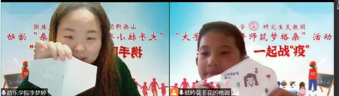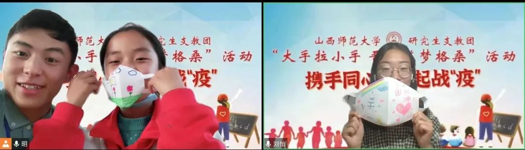 連線中,孩子們主動關(guān)心我校志愿者的在校情況,孩子們充滿關(guān)切的眼神讓志愿者們紛紛動容。志愿者們也向孩子們詳細(xì)的介紹了防疫自護知識,結(jié)合視頻、圖片等形式生動講述了團結(jié)一心、眾志成城的抗疫故事,向所有抗疫英雄們致敬,同時引導(dǎo)孩子們要深刻認(rèn)識到作為一名中國人的幸福,勉勵孩子們永遠(yuǎn)要團結(jié)在一起,共克時艱,遠(yuǎn)在西藏也要做好防護,一字一句中滿是擔(dān)心和牽掛。隨后,孩子們拿出早已準(zhǔn)備好的工具與志愿者們一同制作了口罩,口罩上寫滿了對哥哥姐姐的關(guān)心、祝福,天真可愛的臉龐上寫滿了戰(zhàn)勝疫情的決心。連線最后,孩子們將精心準(zhǔn)備的才藝表演給志愿者們,是鏗鏘有力的《少年中國說》,是活潑動人的《給你一個擁抱》,是真誠溫暖的《聽我說謝謝你》,或許是那不太流暢的表達、不太連貫的動作,讓遠(yuǎn)隔3700公里的傳遞更加有了溫度,讓兩顆互相牽掛的心靠的更近。