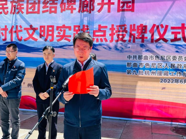 李東表示,西藏首個民族團(tuán)結(jié)碑廊——杭州民族團(tuán)結(jié)碑廊開園暨那曲市新時代文明實踐點授牌儀式的舉行,標(biāo)志著色尼區(qū)新打造的愛國主義教育和民族團(tuán)結(jié)教育基地正式運(yùn)行,對色尼區(qū)推進(jìn)新時代文明實踐工作更加有形有為,創(chuàng)建全國民族團(tuán)結(jié)進(jìn)步模范區(qū)具有重要意義。希望色尼各族干部群眾不斷鞏固“團(tuán)結(jié)穩(wěn)定是福、分裂動亂是禍”的思想認(rèn)識根基,維護(hù)祖國統(tǒng)一,加強(qiáng)民族團(tuán)結(jié),旗幟鮮明反對分裂,努力提升民族團(tuán)結(jié)工作的成效,為創(chuàng)建全國民族團(tuán)結(jié)進(jìn)步模范區(qū)作出積極貢獻(xiàn)。