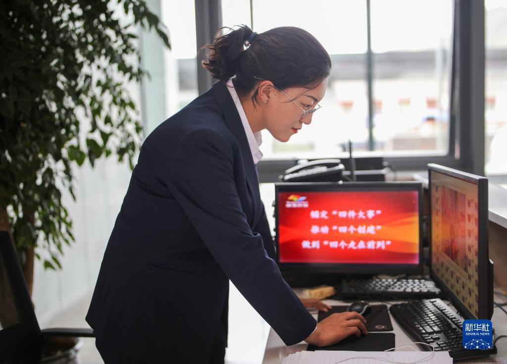 “格桑花開”大學(xué)生就業(yè)創(chuàng)業(yè)特訓(xùn)營學(xué)員、西藏藏建科技股份有限公司職員旦珍在工作中(2022年6月24日攝)。新華社記者 姜帆 攝