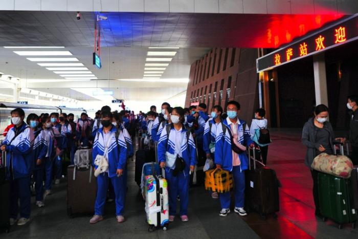 2020年7月,遼寧省遼陽(yáng)市第一中學(xué)西藏班的126名藏族學(xué)生順利完成初中課程,返回西藏家鄉(xiāng)參加內(nèi)地西藏班中考,準(zhǔn)備開(kāi)始新的學(xué)習(xí)和生活。 中新社記者 張偉 攝