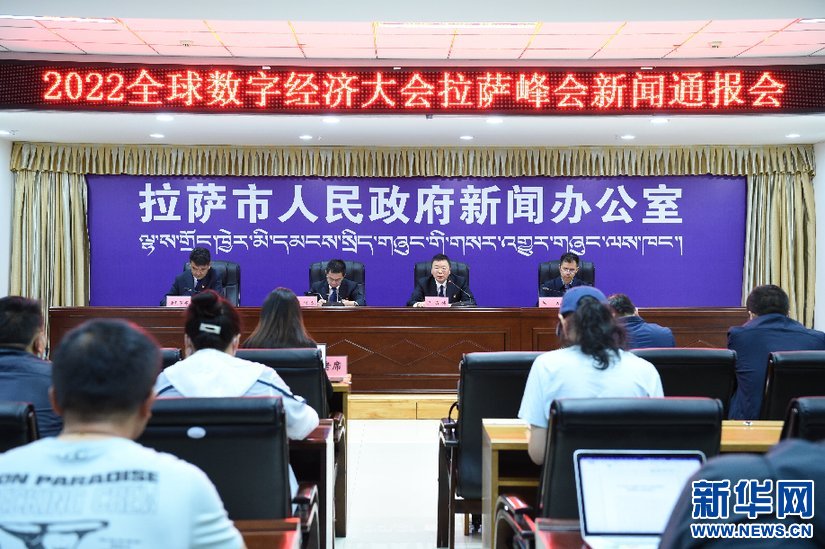 2022全球數(shù)字經(jīng)濟(jì)大會拉薩峰會新聞通報(bào)會現(xiàn)場(7月21日攝)。新華網(wǎng) 旦增努布攝