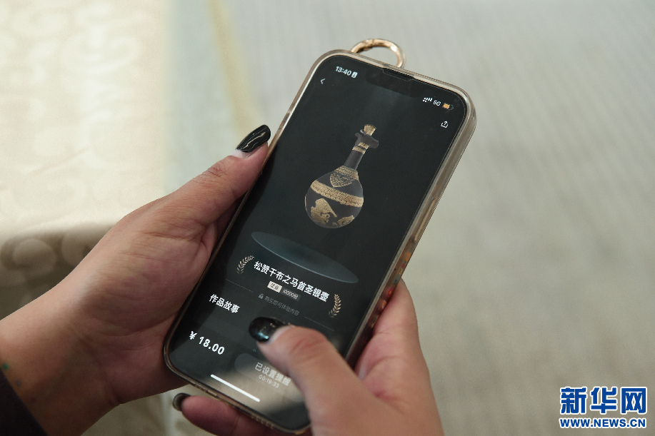 7月21日,用戶在手機端預(yù)約搶購西藏首個數(shù)字藏品《松贊干布之馬首圣銀壺》。新華網(wǎng)旦增努布 攝