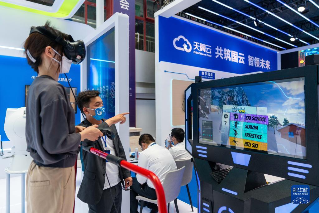 參觀者在2022全球數(shù)字經(jīng)濟大會拉薩峰會上體驗VR運動游戲。新華社記者 周荻瀟 攝
