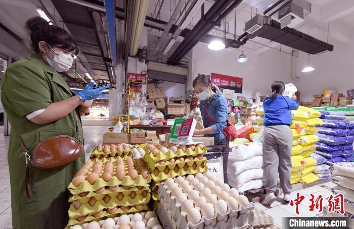 圖為拉薩市民在農(nóng)貿(mào)市場(chǎng)內(nèi)選購(gòu)生活物資。李林 攝