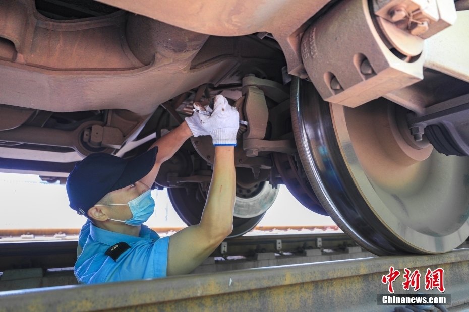 8月17日,北京車輛段北京西庫檢車間內(nèi),檢修人員對時(shí)速160公里動(dòng)力集中型復(fù)興號(hào)動(dòng)車組(俗稱“綠巨人”)的制動(dòng)裝置進(jìn)行更換。這里是京津冀地區(qū)唯一的“綠巨人”檢修維修基地,肩負(fù)著18列共計(jì)261節(jié)車輛的檢修任務(wù)。隨著暑運(yùn)逐漸迎來返校返程高峰,檢修人員也在加班加點(diǎn)為列車做好體檢工作,確保運(yùn)行安全。 中新社記者 賈天勇 攝