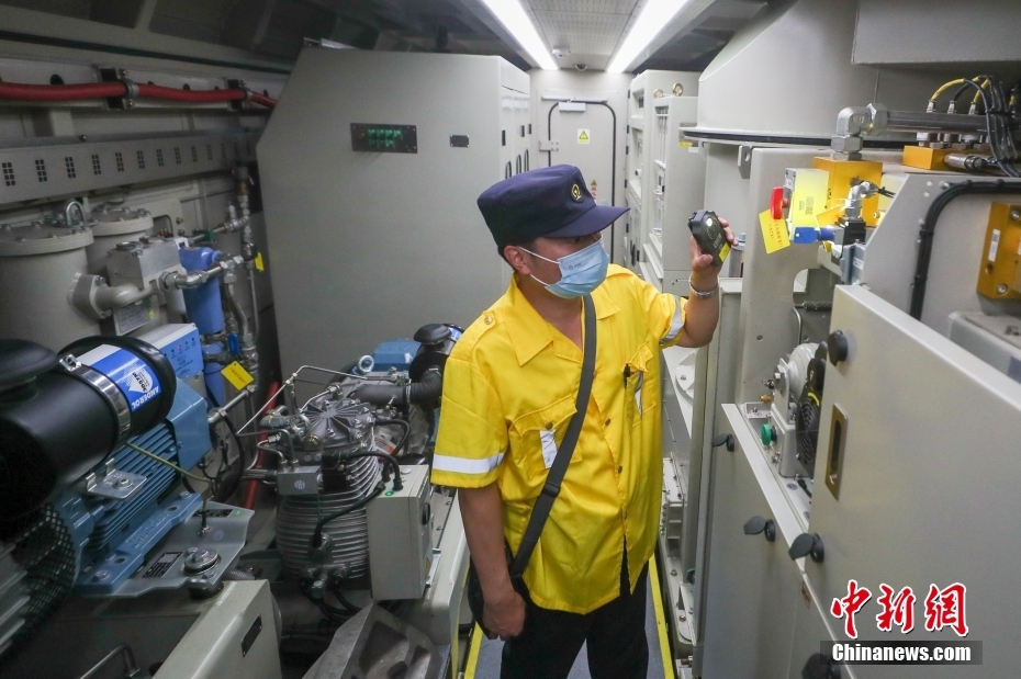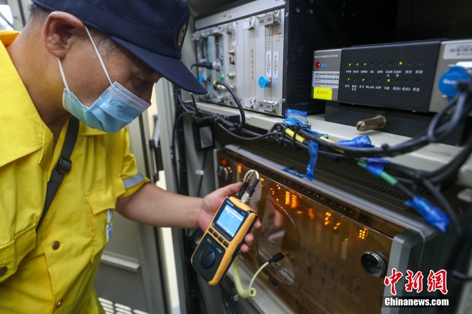 8月17日,北京車輛段北京西庫檢車間內(nèi),北京電務(wù)段檢修人員對時(shí)速160公里動(dòng)力集中型復(fù)興號(hào)動(dòng)車組(俗稱“綠巨人”)的運(yùn)行數(shù)據(jù)進(jìn)行檢查。這里是京津冀地區(qū)唯一的“綠巨人”檢修維修基地,肩負(fù)著18列共計(jì)261節(jié)車輛的檢修任務(wù)。隨著暑運(yùn)逐漸迎來返校返程高峰,檢修人員也在加班加點(diǎn)為列車做好體檢工作,確保運(yùn)行安全。 中新社記者 賈天勇 攝