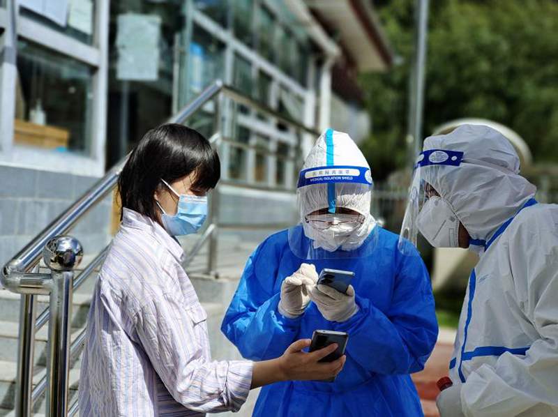 “大家做核酸時(shí)都在使用‘藏易通’掃碼登記,但我們發(fā)現(xiàn)一些老人沒有智能機(jī)或者不會(huì)使用,志愿者們便幫忙手動(dòng)輸入信息?!蔽拿鲗?shí)踐志愿者盧鑫告訴記者。對此,林芝市工布江達(dá)鎮(zhèn)安排了兩組大學(xué)生志愿者,專門為老人代辦、為嬰幼兒申請人工審核后注冊“藏易通”。