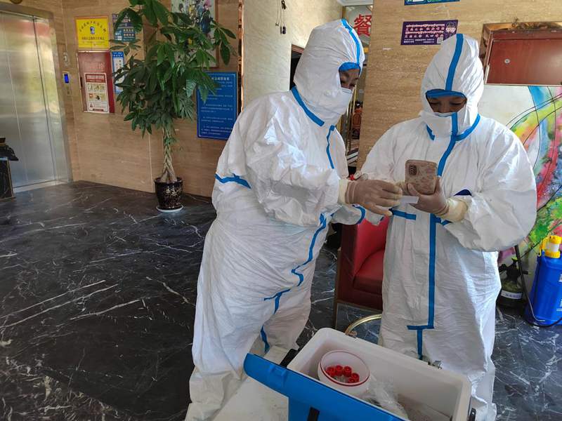 很快她們的申請有了回應(yīng),兩位老黨員變身“大白”,走上了核酸檢測崗位。從上午9點(diǎn)開始,上門為隔離人員進(jìn)行核酸采樣。一直到夜里11點(diǎn)才回家,卸下“大白”防護(hù)服時(shí)渾身已濕透。“能參與到疫情防控志愿服務(wù)中,做點(diǎn)力所能及的事兒,是我的義務(wù)?!蓖白楷斦f。