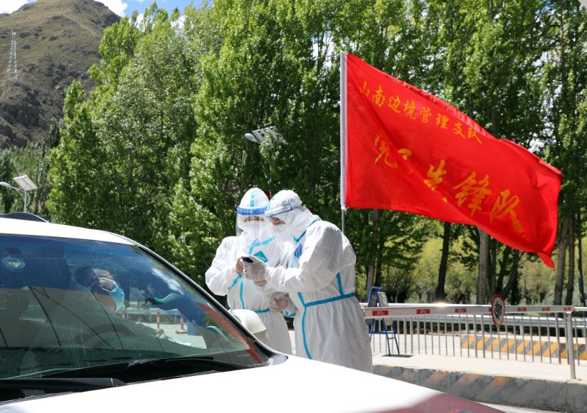 該支隊積極響應(yīng)山南市委、市政府疫情防控需求,從機(jī)關(guān)層面著手,第一時間組建“黨員先鋒隊”。30余名青年移民管理警察主動請戰(zhàn),火速奔赴疫情防控最前線。在進(jìn)出市區(qū)各交通要道執(zhí)勤現(xiàn)場,有序開展人員身份信息比對、核酸檢測報告查驗,車輛消殺等工作,全力確保人員、車輛、物資輸入輸出安全。