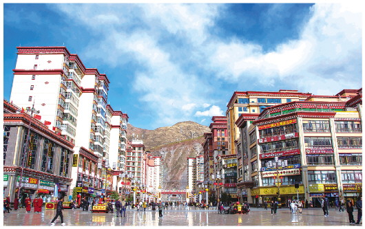 這是位于昌都市卡若區(qū)城關(guān)鎮(zhèn)的茶馬廣場(chǎng)。 新華社資料片