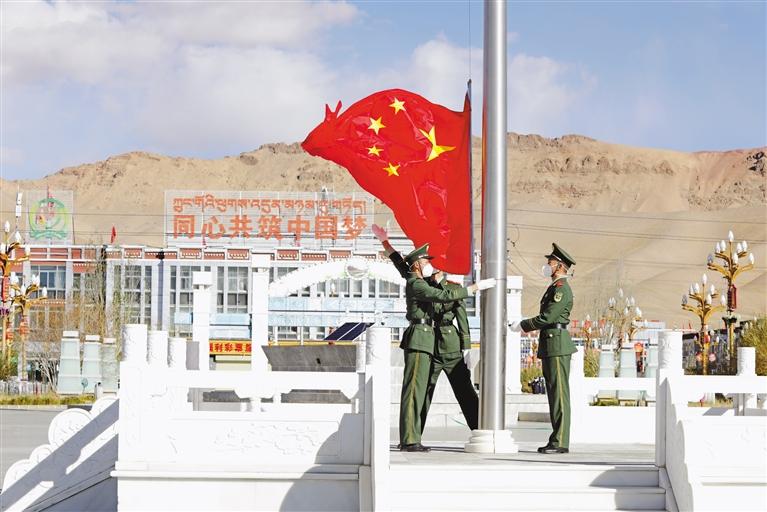 拉薩市堆龍德慶區(qū)的門堆村和崗吉村組織全體村干部舉行線上線下升國(guó)旗儀式,鮮艷的五星紅旗冉冉升起,飄揚(yáng)在村委會(huì)上空。嘹亮的國(guó)歌聲中,鮮艷的國(guó)旗下,莊嚴(yán)肅穆的氛圍里,熱愛祖國(guó)、奮發(fā)圖強(qiáng)的情感在每個(gè)人心中激蕩。