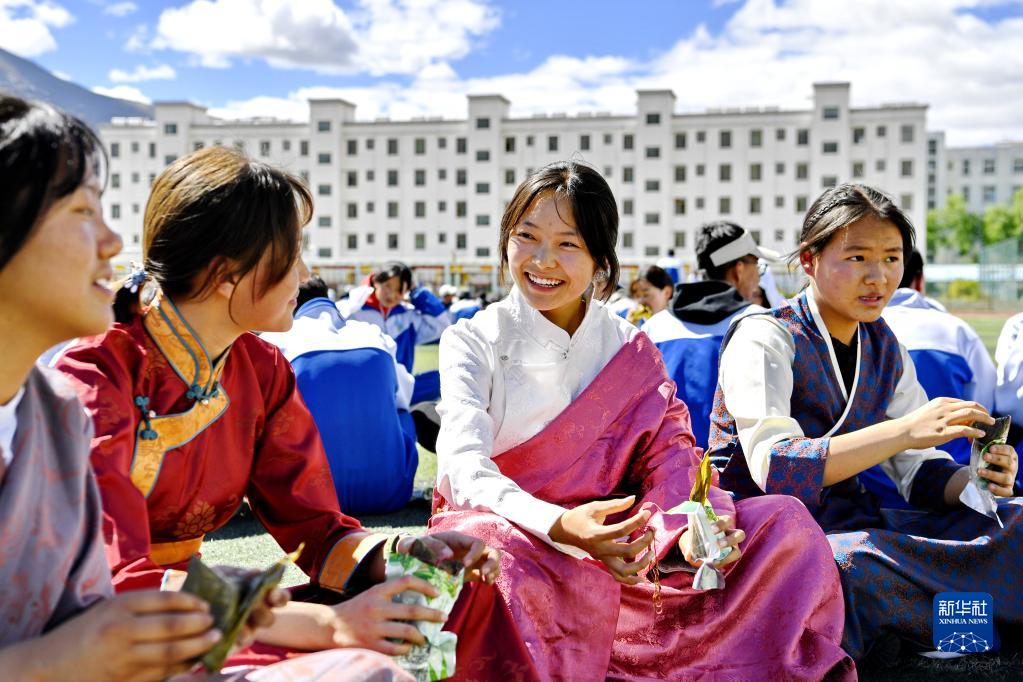 西藏山南市第二高級(jí)中學(xué)的學(xué)生在學(xué)校過(guò)端午節(jié)(2022年6月3日攝)。新華社記者 張汝鋒 攝