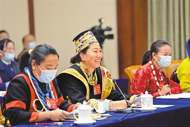 10月17日,西藏代表團舉行分組會議,認(rèn)真討論黨的二十大報告。 圖為西洛卓瑪代表(中)在會上發(fā)言。 旦增西旦 攝
