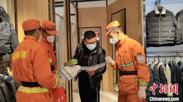 消防隊(duì)員正在向商家講解防火知識(shí)?!≡辣蟆z