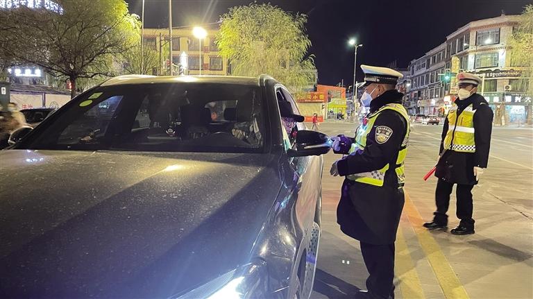 拉薩冬日的夜晚寒風(fēng)凜冽。夜色中,一輛輛汽車有序通行,街道又恢復(fù)了往日的熱鬧。當(dāng)天晚上9時(shí)許,記者跟隨拉薩市公安局交警支隊(duì)執(zhí)法監(jiān)督大隊(duì)民警前往江蘇大道,城南大隊(duì)的民警已經(jīng)設(shè)置好路障、標(biāo)牌,正在對(duì)過(guò)往車輛逐一進(jìn)行詳細(xì)排查?!澳茫?qǐng)出示駕照。”“您好,請(qǐng)吹氣?!痹诿窬闹笓]下,車輛有序通過(guò)檢查點(diǎn)。市民扎西多吉駕車經(jīng)過(guò)檢查點(diǎn)后告訴記者,在這么冷的天氣里,交警依然堅(jiān)守在路面上,確實(shí)令人敬佩,應(yīng)該為他們點(diǎn)贊?!拔視?huì)牢記‘開車不喝酒,喝酒不開車’,也會(huì)自覺遵守交通法律法規(guī),文明出行?!痹鞫嗉f(shuō)。