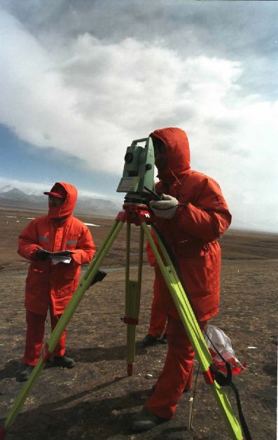 2001年4月,鐵道部第一設(shè)計(jì)院的勘測(cè)人員在海拔近5000米的四道梁加緊進(jìn)行青藏鐵路的勘測(cè)工作。在國務(wù)院批準(zhǔn)修建青藏鐵路后,鐵道部第一設(shè)計(jì)院的上千名勘測(cè)人員克服惡劣的自然條件,為青藏鐵路早日開工夜以繼日地工作。