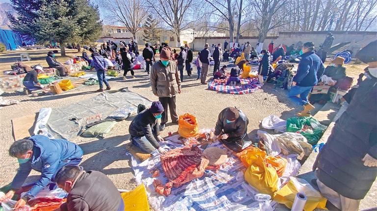 近日,拉薩市城關(guān)區(qū)繼續(xù)在市區(qū)設置“冬季牛羊肉臨時銷售市場”,按照慣例,臨時銷售市場設置在慈松塘中路,共189個攤位,牛羊肉投放時間持續(xù)至2023年2月18日。在臨時銷售市場,記者看到道路旁早已搭建好帳篷,攤位整齊劃一,市民有序購買。