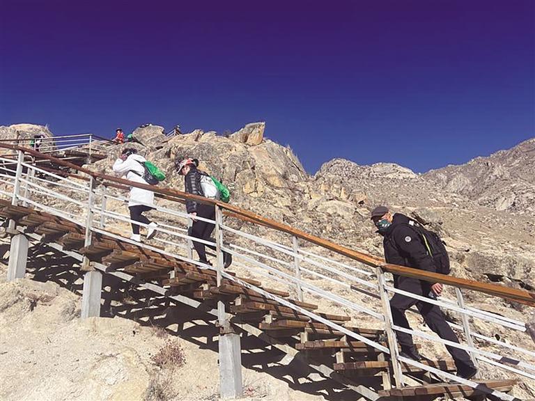 活動中,登山群眾不懼冬日寒冷,挑戰(zhàn)每一級臺階,當(dāng)攀登到終點時,大家紛紛合影留念,欣賞重巒疊嶂,俯瞰拉薩全景,許下新年的美好愿望。