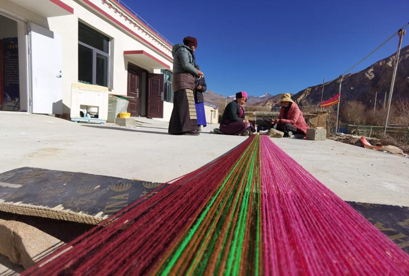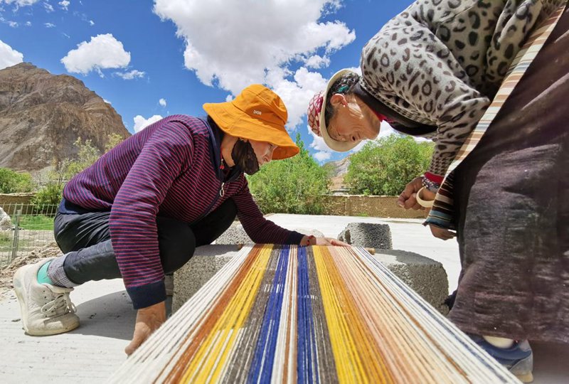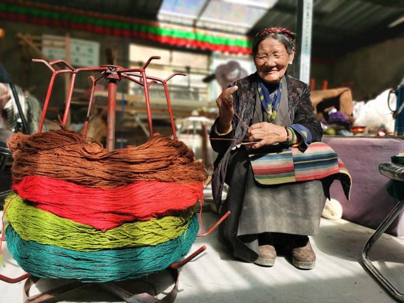 除了賣產(chǎn)品,次仁曲珍也心系十里八村的其他群眾。“我們的原材料(羊毛、羊絨),都是從周邊村子收購的。其實,以前很多老百姓家的羊毛要么自用,要么送人,幾乎很少出售?,F(xiàn)在他們可以送到我這里,市場價7元—10元/斤。”古老的紡織技藝與珍稀羊毛(絨)材質(zhì)融合,是每一位阿佳用心編織的直抵人們內(nèi)心深處的柔軟,更是她們的五彩夢想。