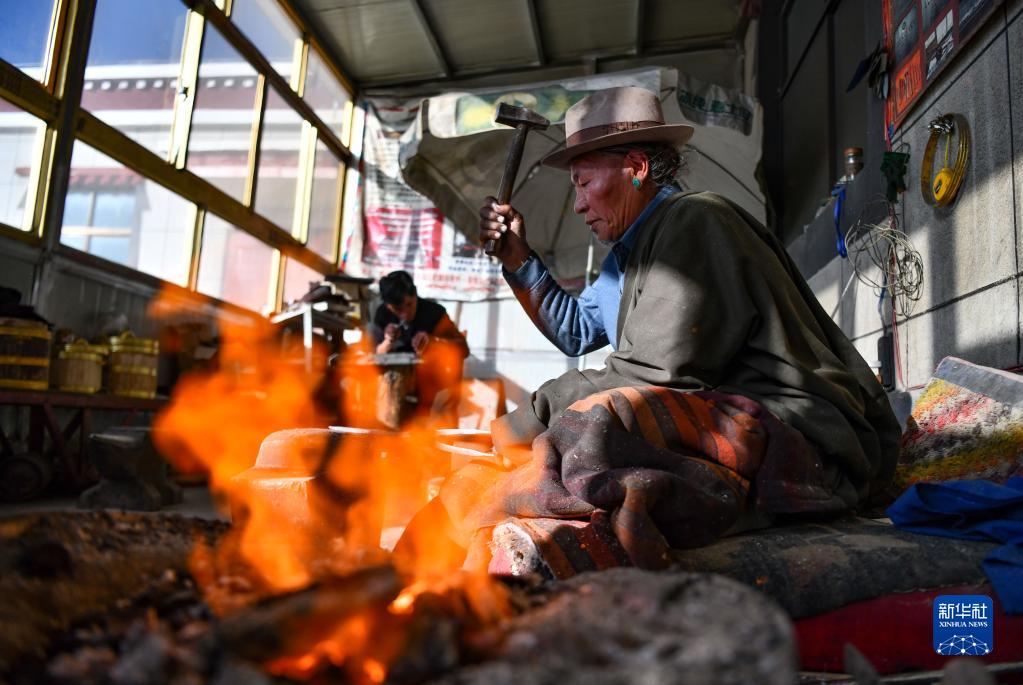 普達(dá)瓦在制作拉孜藏刀(1月19日攝)。新華社記者 晉美多吉 攝