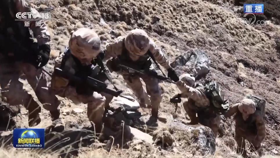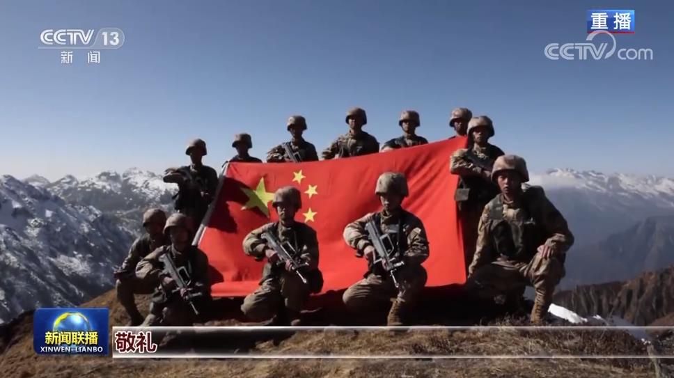 巡邏隊在中午登上海拔5000多米的高山點位,他們在這里展開國旗,宣示主權(quán)。