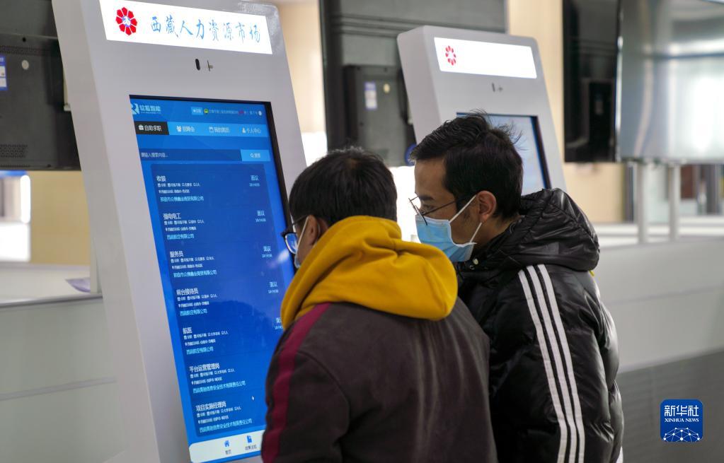 2月8日,求職者在西藏2023年“春風(fēng)行動(dòng)”暨就業(yè)援助月招聘活動(dòng)現(xiàn)場(chǎng)尋找崗位。新華社發(fā)(旦增努布攝)