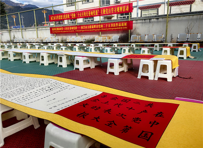 創(chuàng)新載體,全方位宣傳。林芝市統(tǒng)籌各類宣傳資源,線上線下同頻共振,全方位、多角度、寬領域、深層次宣傳黨的二十大精神和區(qū)黨委十屆三次全會、市委二屆三次全會精神,營造學習宣傳的濃厚氛圍。一是新聞宣傳強信心。林芝報、林芝廣播電視臺、西藏林芝網、微林芝等市屬主流媒體紛紛開設《學習貫徹黨的二十大》《新時代新征程新偉業(yè)》等多個專題專欄,持續(xù)推出學習貫徹黨的二十大精神相關報道。截至目前,共刊播《基層宣講員讓黨的二十大精神翩翩飛入百姓家》《軍民共話美好未來 繪就美麗鄉(xiāng)村新畫卷》等相關新聞2500余條。二是社會面宣傳筑同心。采取“屏、板、欄、幅”立體宣傳方式,在全市各級黨政機關和企事業(yè)單位大門LED電子顯示屏以及市、縣城區(qū)主要街道、跨街龍門、出租車頂燈、汽車站等公共場所的宣傳媒介上滾動播放自治區(qū)統(tǒng)一印發(fā)的宣傳標語1.2萬余條次,更新懸掛國旗3.5萬余面,制作發(fā)放宣傳海報1.5萬張、宣傳品2500余個,形成抬頭可見、隨處可學的濃厚社會氛圍。察隅縣上察隅鎮(zhèn)遲巴村村“兩委”和駐村工作隊用彩色粉筆繪制黨的二十大、“新黨章”等主題黑板報,用畫筆向村民傳遞黨的最新政策,深受群眾喜愛。三是網絡宣傳聚民心。充分發(fā)揮新媒體平臺宣傳形式豐富的特點,持續(xù)推送重磅報道和重點文章,策劃打造一批融媒體產品,在全網迅速興起學習宣傳貫徹會議精神熱潮。市委網信辦策劃制作短視頻《學習黨的二十大精神 談心得感悟》、“林芝融媒”抖音號推出《二十大時光》微視頻,將鏡頭對準二十大代表、基層黨員群眾,展現(xiàn)全市干部群眾積極向上的良好風貌?!鞍鸵巳诿健倍兑籼柾瞥觥包h的二十大精神快問快答”系列活動,線上線下聯(lián)動學習,推動黨的二十大精神入腦入心?!安煊缛诿健倍兑籼柌邉濋_展《鄉(xiāng)村振興正當時》黨的二十大主題抖音直播活動,通過網絡直觀展現(xiàn)新時代察隅新農村、新氣象、新希望。目前已開展7場直播活動,觀看人數達10萬人次。四是文藝宣傳暖人心。充分發(fā)揮市、縣(區(qū))、村三級文藝文化團體作用,組織開展“深入生活 扎根人民”“幸福不忘共產黨 陽光路上夢起航”等各類文藝文化活動,精心打造文藝精品力作,用文藝活動、文藝作品溫暖人心。截至目前,各級文藝演出隊開展文藝匯演293場次,參與人數4.2萬余人次;創(chuàng)作推出音樂作品《沐浴幸?!?、攝影作品《我和國旗》、書法美術作品《建功新時代 奮進新征程》、文學作品《黨的光輝照萬家》等文藝作品300余個。波密縣完全小學在崗云杉林景區(qū)組織開展“學習黨的二十大,爭做好少年”采風寫生活動,學生們以文藝創(chuàng)作的形式學習黨的二十大精神,并將學習成果轉化到作品中。市民族藝術團以深入挖掘歷史文化、講好紅色故事為主題,籌拍了微電影《立定村屹立的紅旗》。市文聯(lián)書法美術家協(xié)會理事茹輝春同志,在黨的二十大召開后用行、楷兩種書法形式撰寫了黨的二十大報告全文書卷,書卷共有八卷,每卷長30米。市委宣傳部、市文廣局、市文聯(lián)組織市書法美術家協(xié)會開展“禮贊二十大·送福進萬家”林芝市2023年新春書法美術家“深入生活 扎根人民”送祝福和采風活動,共開展送春聯(lián)活動15場次,送出對聯(lián)、福字、掛軸、繪畫等作品8950幅(對),服務群眾6700余人次。