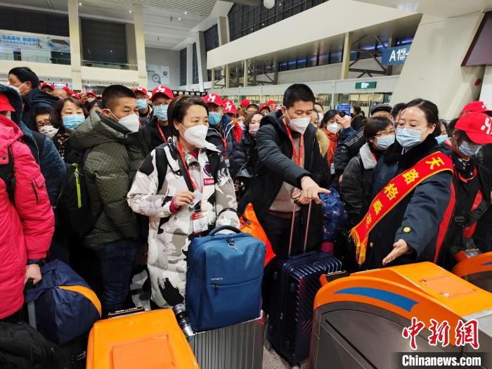 圖為乘坐首趟進(jìn)藏旅游專列的旅客進(jìn)站。楊紅健 攝