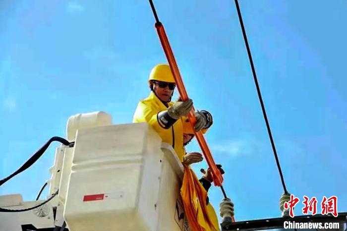 圖為扎西尼瑪進(jìn)行電力搶修作業(yè)。受訪者供圖