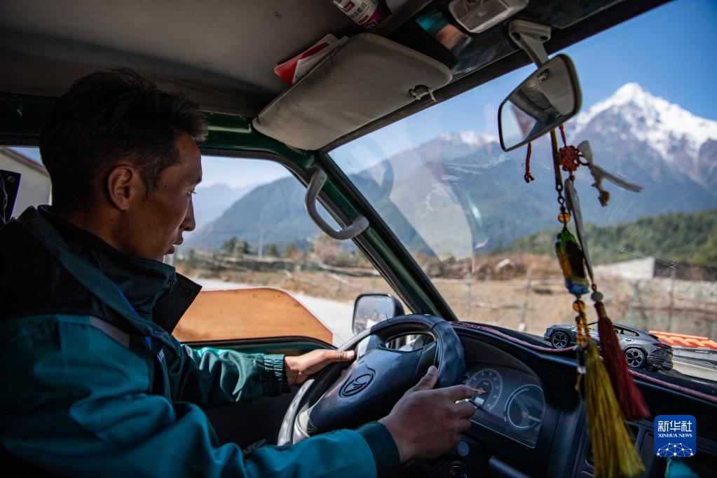 巴桑頓珠把包裹放上車,迎著喜馬拉雅山南麓的暖濕空氣,開始了一天的配送。