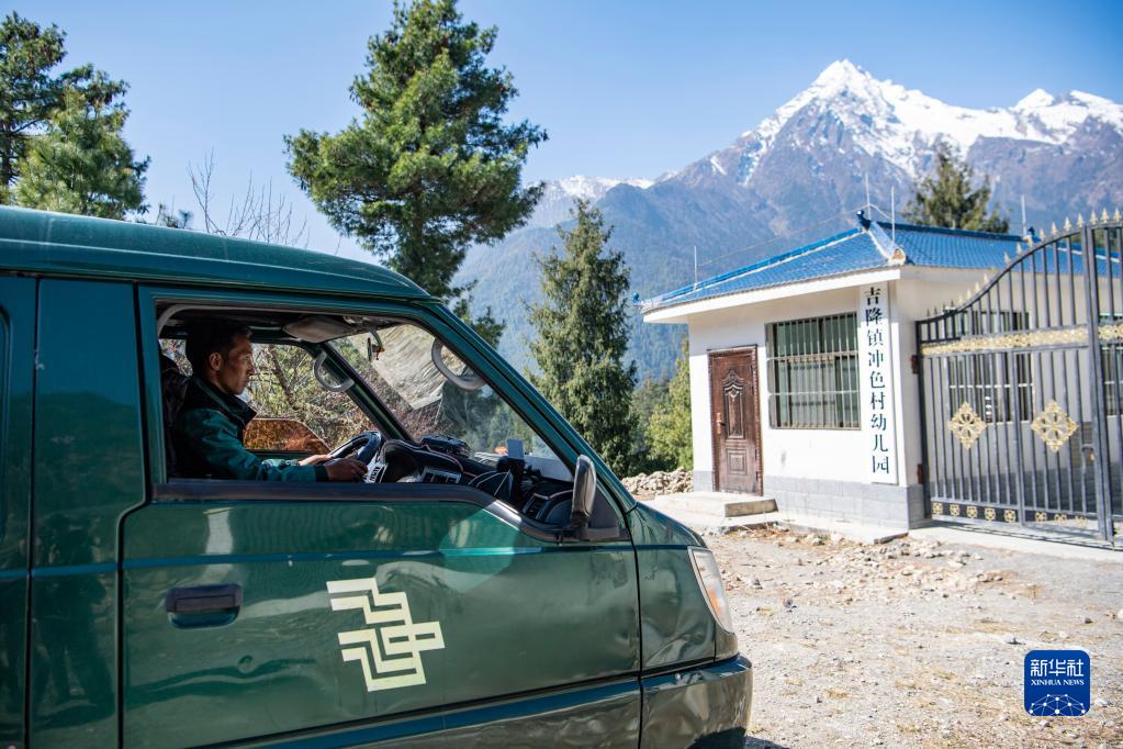 3月12日,在西藏吉隆縣沖色村,巴桑頓珠正在派件。新華社記者 孫非 攝