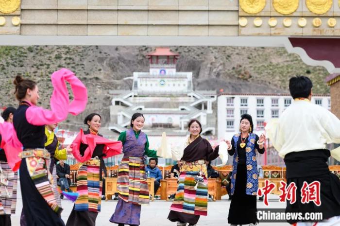 西藏洛隆縣易地搬遷安置點阿托卡小康示范新村,村民載歌載舞。何蓬磊 攝