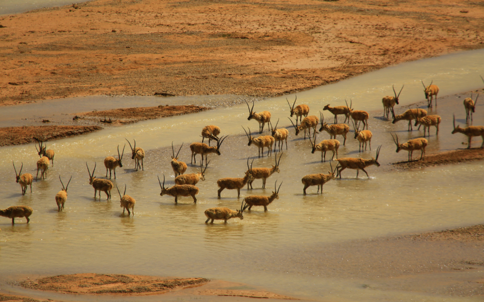 部分雄性藏羚在羌塘國家公園候選區(qū)江俄藏布泡澡 (羌塘國家級自然保護區(qū)管理局供圖)