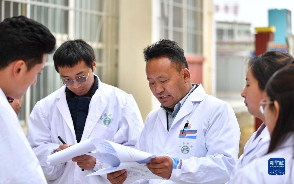 普窮次仁和學(xué)生們一起學(xué)習(xí)中醫(yī)藥相關(guān)政策(4月20日攝)。新華社記者 晉美多吉 攝