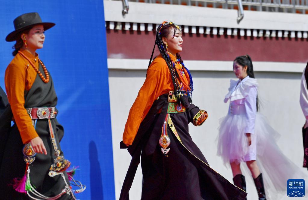 5月10日,西藏技師學(xué)院學(xué)生進(jìn)行傳統(tǒng)服飾表演。新華社記者 張汝鋒 攝