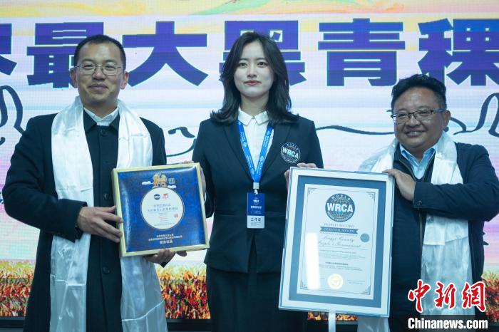 10日,經(jīng)世界紀(jì)錄認(rèn)證(WRCA)官方人員現(xiàn)場(chǎng)審核,西藏隆子縣被認(rèn)證為“世界最大黑青稞種植基地”。