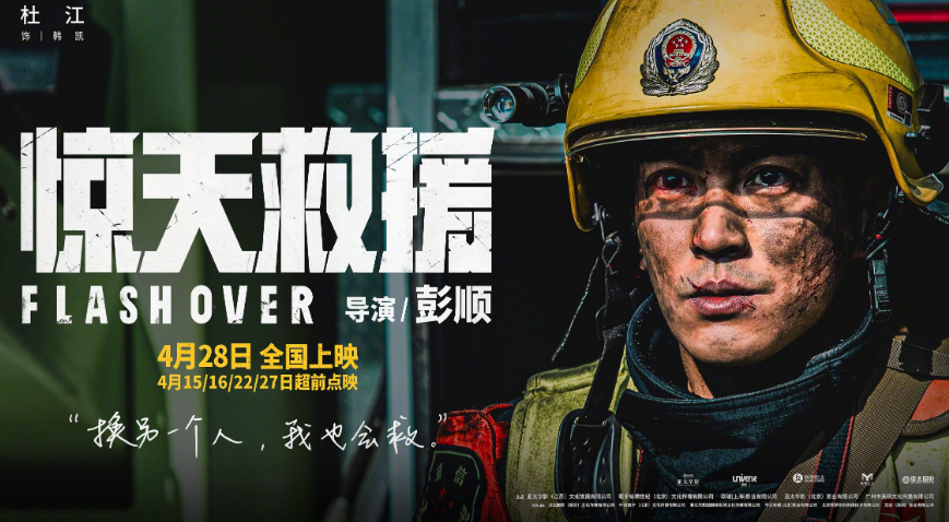 電影《驚天救援》中,杜江飾演消防員韓凱。